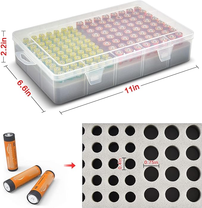 - Compact aa battery case: Plastic transparent battery holder case can display the number of available stizzy battery stored in it at a glance, and battery box organizer has hanging ears that can be hung on the wall, you can also choose to put it in a drawer to let your battery buddy are neatly placed in the same place and refuse to be cluttered, and it is also necessary to avoid the battery contacting each other which will drain the power and avoid the fire caused by the burning of the battery.