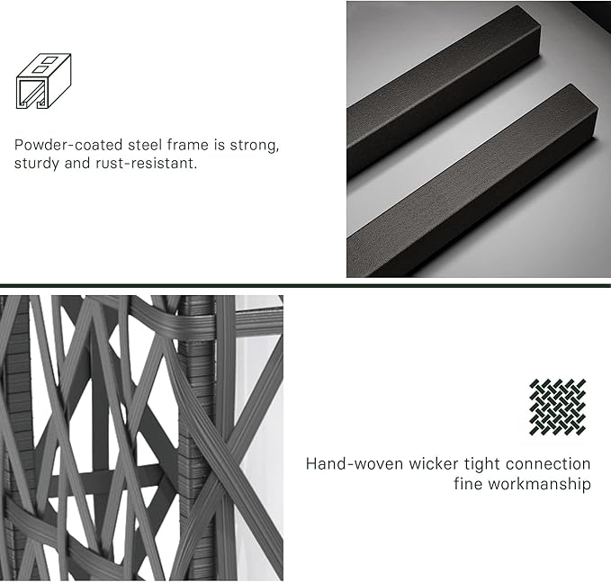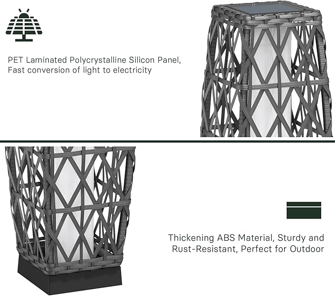 - PREMIUM MATERIAL: Powder-coated steel frame is strong, sturdy and rust-resistant. Premium wicker is non-toxic, all-weather, and fade-resistant. Contains a 3.2V, 1000mAh rechargeable battery and a premium solar panel
