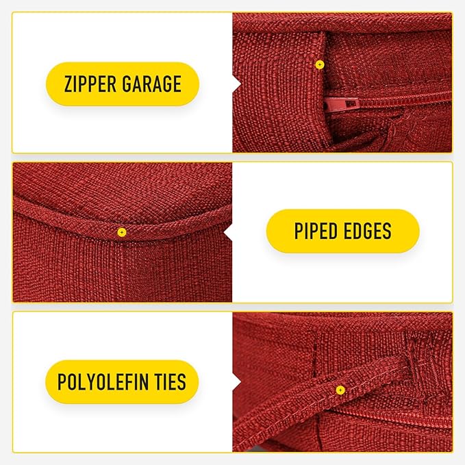 - 【Invisible Zipper Garage | Removable Cover with Ties】Zippers lock to keep a tight closure, stored in protective garages to prevent scratching your patio furniture when closed and offer a seamless look. Removable cover with non slip ties, customizable fit to keep your cushion where you want it.