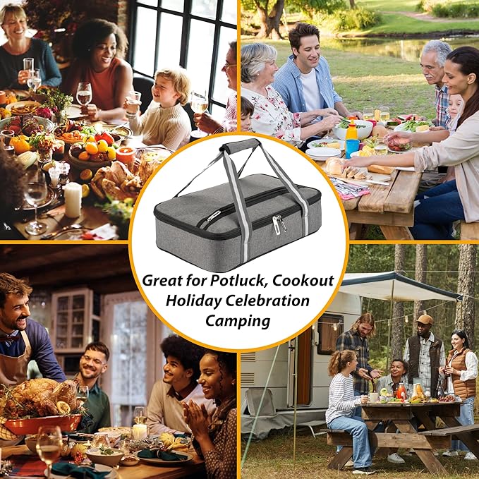 Stack Store Plus More Gray Insulated Casserole Carrier for Hot or Cold Food, Lasagna Holder for Picnic, Potluck, Cookout – Fits 9”x13” or 11”x15” Baking Dish – Thermal Tote
