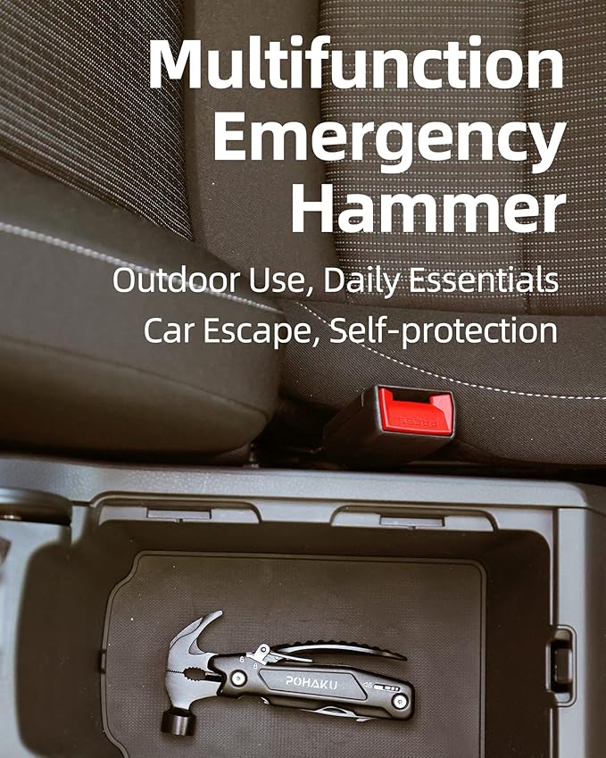 - Emergency Pocket Multitool. The safety belt cutter and tough hammer (window breaker) make this survival tool practical to handle emergencies, so you can keep this hammer tool in your car.