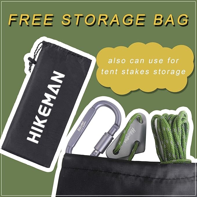 - FUNCTION:the rope system is designed for camping,each have a locking carabiner clip and a triangular guy lines tensioner,which help eliminates time-consuming hitch knots,and convenience for adjust the length as you need;