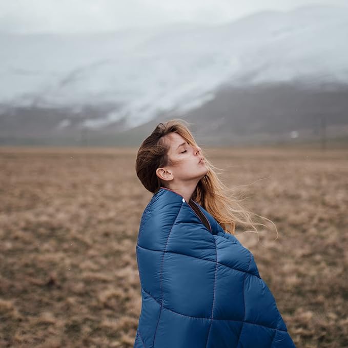 zzlamb Camping Blanket, Compact Lightweight Soft Puffy Blanket Water-Repellent, Packable Warm Quilt Down Alternative Picnic Hiking Backpacking Beach Travel RV Airplane Couch Car