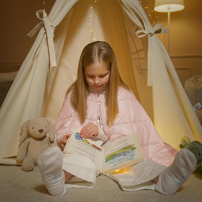 - Measurements: The camping blanket for kids measures 39” x 55” when laid flat and 6” x 10” when packed. For kids, please purchase the size of 39’’x55’’. If adults or big-boned kids bought the size of 39’’x55’, it might be a little bit small. Filled with 100% recyclable materials, the weight of the blanket is only 1.1 lbs. It is both warm and comfortable