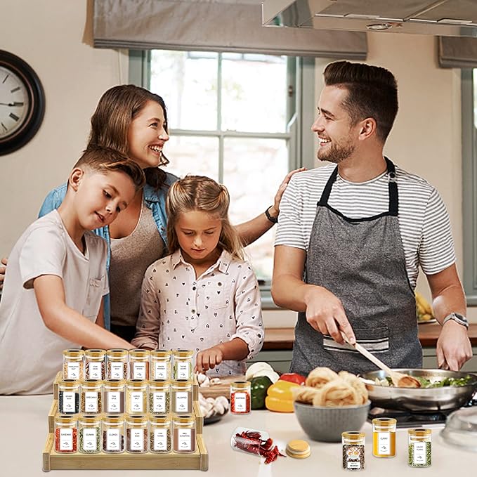 SLifeJars-Spice Jars with Label, 4 oz 24 pcs Spice Containers Glass Jars with Bamboo Lids, Seasoning Containers Bottles, Airtight Empty Glass Jars for Spice Rack,Drawer,Cabinet,Pantry