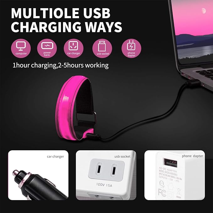 • 【USB Rechargeable】 Unlike most LED armbands with disposable batteries, our LED arm band features a rechargeable long-lasting battery that delivers up to 5 hours of runtime. Fully charges in just 2 hours and provides 3-5 hours of continuous use.