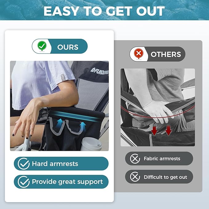 - Instant Setup and Compact Design: Our FUNDANGO Camping rocking Chair features a unique instant open and close frame system, allowing you to set up and pack away in seconds. When folded, it takes up half the space of regular chairs, making it incredibly portable for all your outdoor adventures.