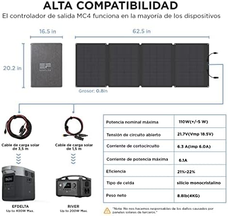 EF ECOFLOW 110W Portable Solar Panel, Foldable with Carry Case, High 23% Efficiency, IP68 Water & Dustproof Design for Camping, RVs, or Backyard Use