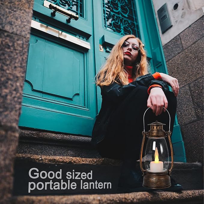 - 【Vintage Lantern】 This medium vintage lantern made of high quality ABS plastic material, with waterproof design. it is sturdy for year round use outside. You can hang it ,this portable candle vintage lantern with a hook, you can hang it on a tree or wall or put it on the table, ground when you are fishing, camping or others. It is light and portable.
