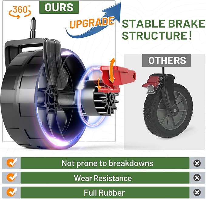 - ALL-TERRAIN PERFORMANCE: Equipped with 7.5" diameter all-terrain wheels with brakes,the middle tread is made of rubber, quiet and wear-resistant; 360° rotating front wheels and enable this wagon to maneuver easily.