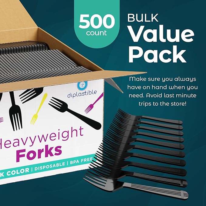- Plastic Forks Bulk: A pack of 500 plastic forks to meet your party needs. Lightweight, yet sturdy and durable, ideal for all types of food.