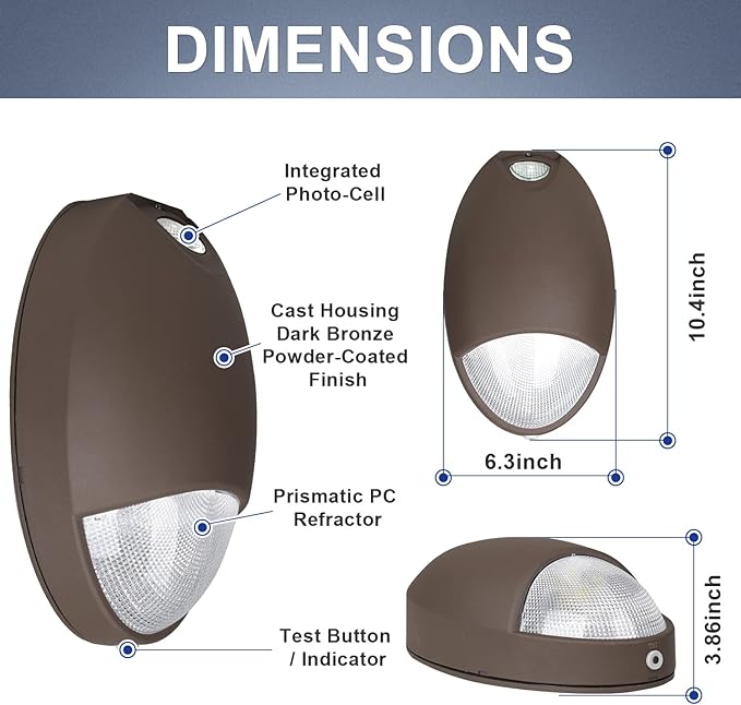 - ๐ใCommercial Grade Materialใ--This LED emergency wall light is UL certified and complies with UL 924 emergency lighting and exit signs regulations, the housing is made of die-cast aluminum with a deep bronze powder coating, flame retardant and high impact resistance, it is resistant to fire or The earthquake can still continue to work.