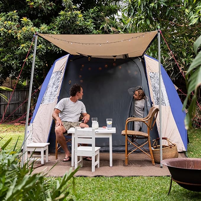 - 【Removable Tip Cover】The top of awning poles with a removable spherical tip cover, glow in the dark, made of TPR insulation material, can prevent lightning strike. It can reduce slipping and eliminate punctures when supporting the center of the tent tarp. In windy weather, it can hold the tarp together with the pole to prevent collapse. Note: The glow-in-the-dark caps on the pole tips are soft and couldn't support a tarp that's too heavy, so it's recommended that you use the pole tips to go through the tent grommets and then fix the tent with the tip caps.
