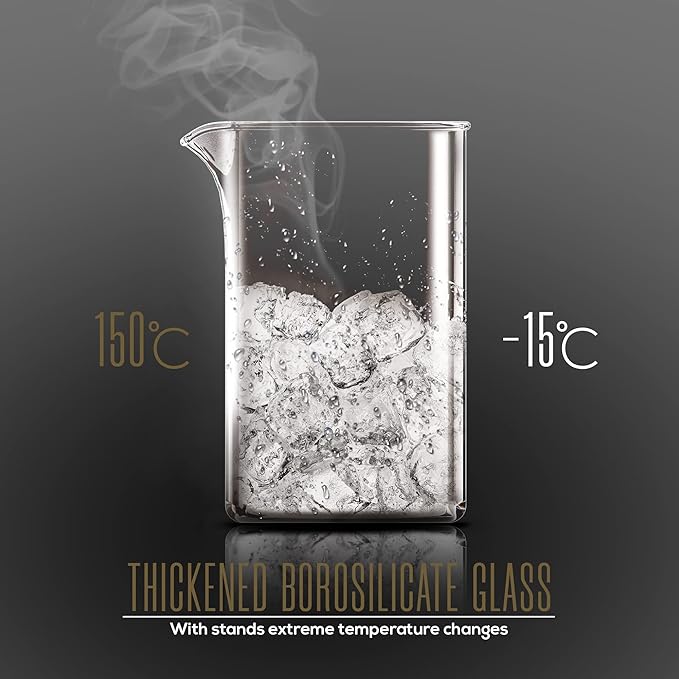 - Durable heat resistant borosilicate glass carafe beaker sits in stylish insulated plastic frame which makes pouring coffee easier and prevent wobbling