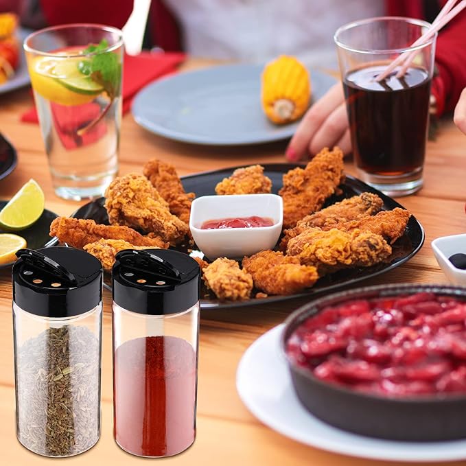 - Sufficient Quantity and Large Capacity: there are 30 pieces plastic spice jars with shaker in the package, and the black screw lid with double sided flip lid can meet the storage needs of various spices in daily life; The spice jar has a capacity of 8.7 oz/ 250 ml, providing a larger capacity for storing spices