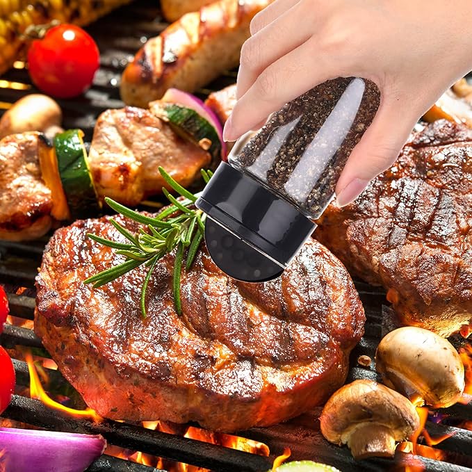 - 2 Independent Flip Lids: the flip lid design of the plastic seasoning container is smart and thoughtful, it can meet the precise amount of cooking, you can take it as you go, you don't have to remove the lid to measure the spices, if you just want to sprinkle the spices, the holes on the side of the shaker are large enough to allow dried herbs to pass through