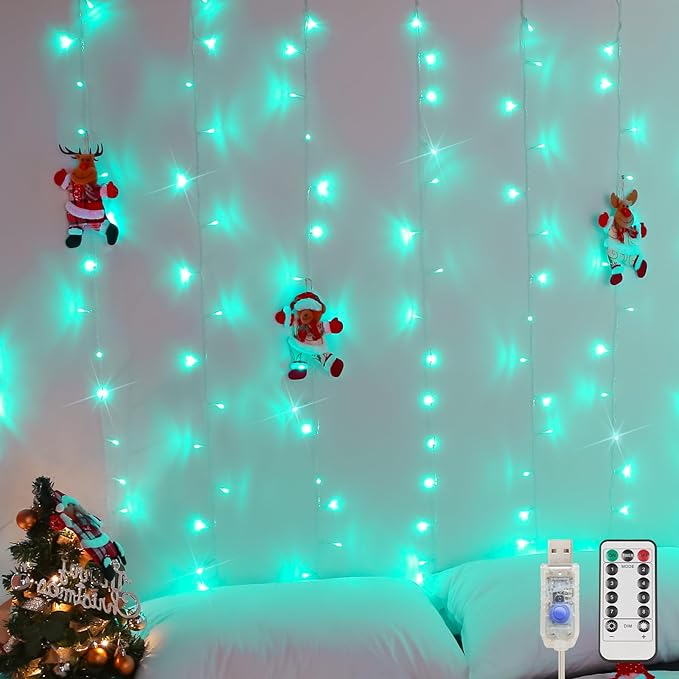 - [CURTAIN LIGHTS FOR BACKDROP]: Teal curtain lights can add the perfect ambience for any event. It is a simple yet magical way to exude calm and peaceful. You can make a glistening light wall, a lighting party backdrop, a magical lighting curtain. Surely a perfect addition to your daily life.