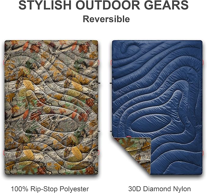 - ๐ซ BLANKETS FOR EVERYWHERE ๐ซ With a ripstop shell, and a warm insulation, you can bring this puffy warm compact blanket quilt to anywhere like outdoor concerts, festivals, beach, picnics, traveling and hiking, backpacking, camping, fishing and hunting adventures.