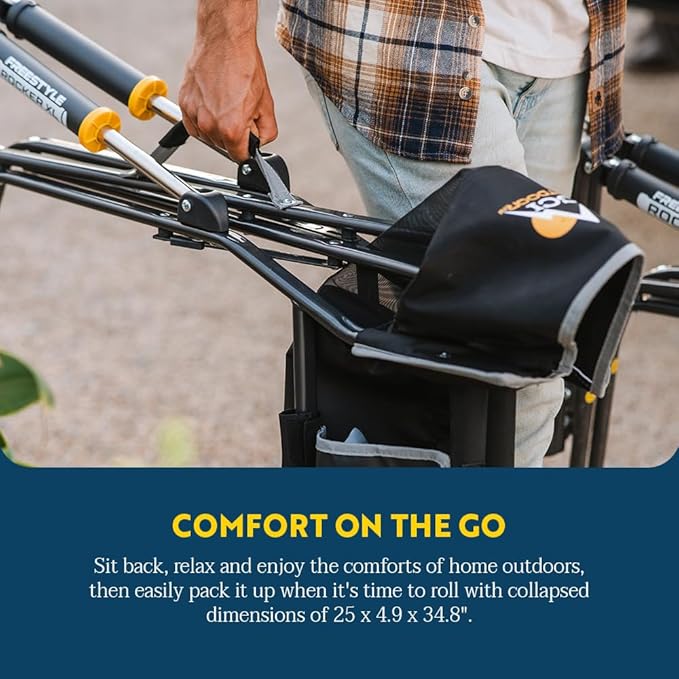 - OUTDOOR LIVING. Great for relaxing by the campfire or sideline, the Freestyle Rocker XL from GCI Outdoor is an oversized adult rocking chair that's easy to carry and foldable. Enjoy comfort on your adventures with smooth rocking on any surface, anywhere.