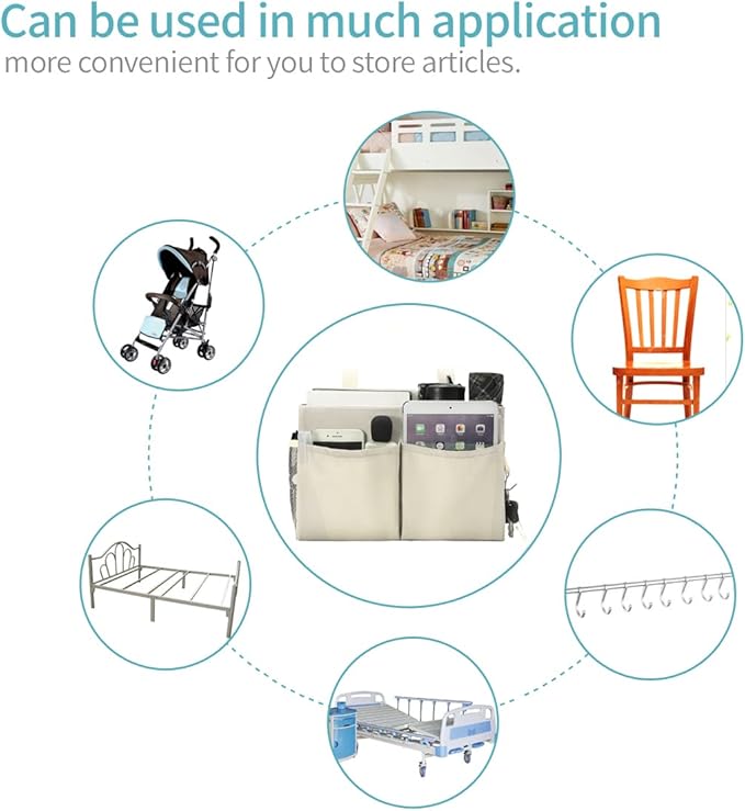- BEDSIDE ORGANIZER HAVE MULTI PURPOSE: Perfect for students hang on the bedside to storage books,magazines,notebooks,pens,celphone and some snacks and drinks,also great for hang on the baby stroller or child bed to organizer the items that baby need