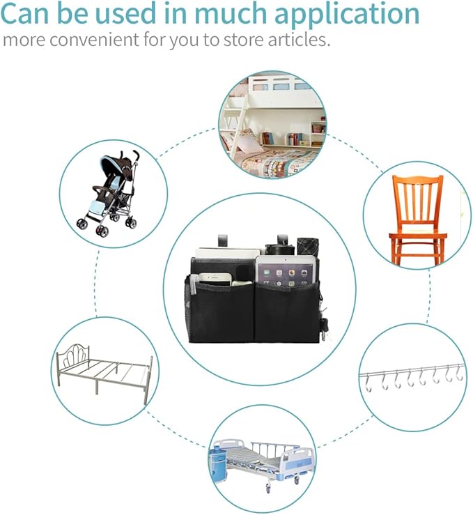 - BEDSIDE ORGANIZER HAVE MULTI PURPOSE: Perfect for students hang on the bedside to storage books,magazines,notebooks,pens,celphone and some snacks and drinks,also great for hang on the baby stroller or child bed to organizer the items that baby need