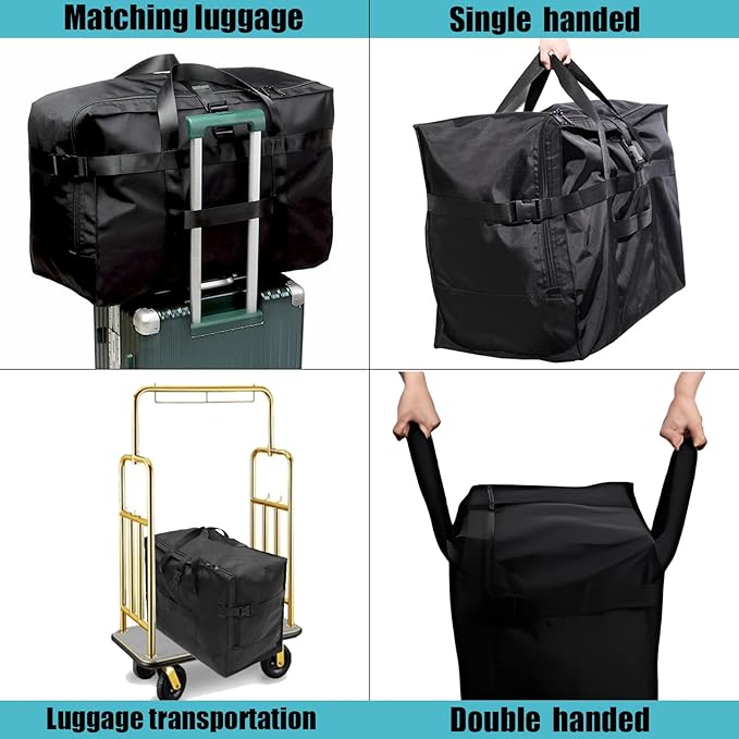 Travel Duffle Bag,120L Foldable Heavy Duty Overnight Bag, For Spirit Airlines, RicoRich Larger Size Carry on Luggage Sport Duffel for Weekender/Vacation/Camping/Beach/Tent(Black)