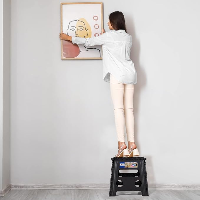 - Space-Saving Design: This stepping stool easily collapses for compact storage, making it perfect for homes with limited space. It can be tucked away conveniently when not in use