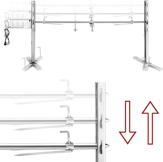 - [Adjustable Spit Height]: Our holes are designed for four-level height adjustment. Lockable casters ensure stability during use. 15inch/38.1cm,18.9inch/48cm,22.7inch/57.6,26.7inch/67.8cm