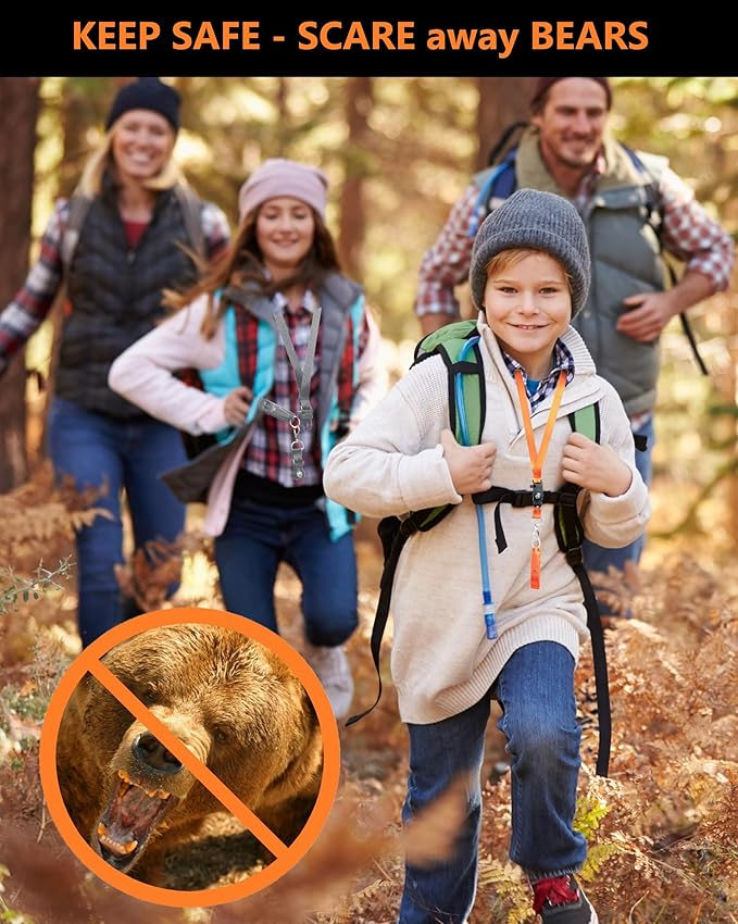 - SCARE AWAY BEARS or CALL FOR HELP - Easy to blow to scare animals that take you by surprise on hiking trails or while backpacking in the wilderness. Super loud high pitched noise maker up to 120dB. Won't get stuck, won't quit.