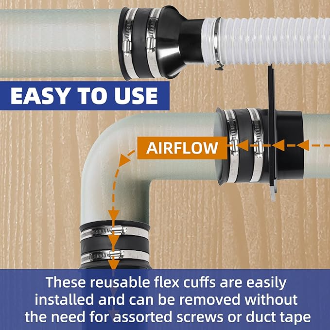 - FITS 4-INCH DUST COLLECTION HOSES - The flex cuff’s inner diameter is 4 inches, an outer diameter of 4 9/16 inches, and a length of 2 1/2 inches