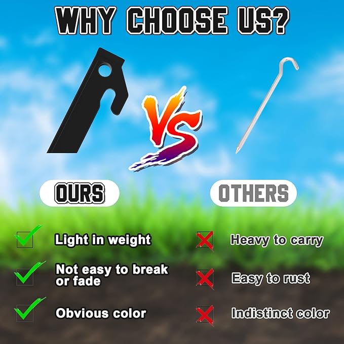 - Wide Applicable Applications: this camping stake has a wide range of uses, nice for hiking and camping outdoors, you can use them to tents, canvas, hammocks, hanging chairs, inflatable boats and so on, bringing you a lot of convenience