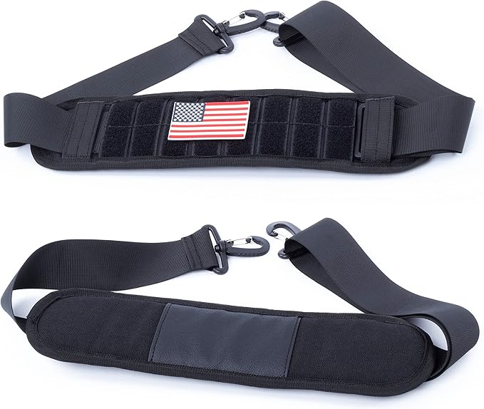 - 2" wide heavy duty all around carry handle with pad for durable use and comfortable carry. One adjustable and removable single shoulder strap attached with large foam padded pad for comfort. MOLLE webbing with velcro loop built on pad for attachments.