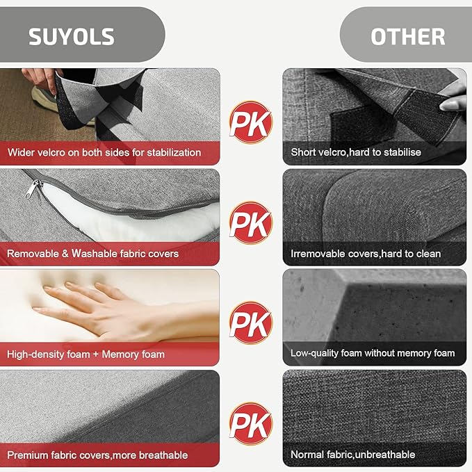- 【Versatile & Practical】SUYOLS foldable sofa single has two forms, which can be easily converted into a sofa and a foldable mattress to satisfy your different needs. Ideal for providing you with an exceptionally comfortable posture when reading, surfing the Internet, watching TV, doing exercise, etc.