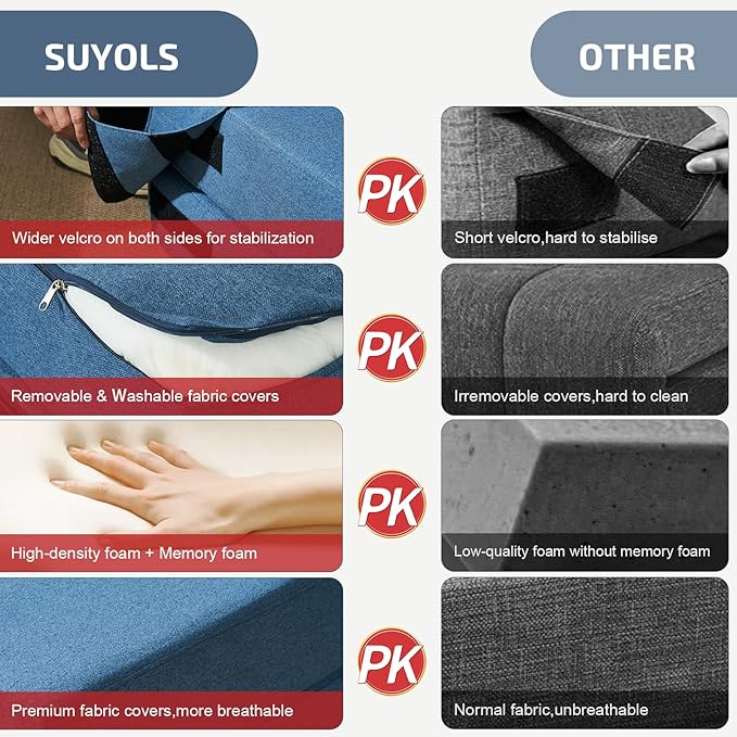 - 【Versatile & Practical】SUYOLS foldable sofa single has two forms, which can be easily converted into a sofa and a foldable mattress to satisfy your different needs. Ideal for providing you with an exceptionally comfortable posture when reading, surfing the Internet, watching TV, doing exercise, etc.