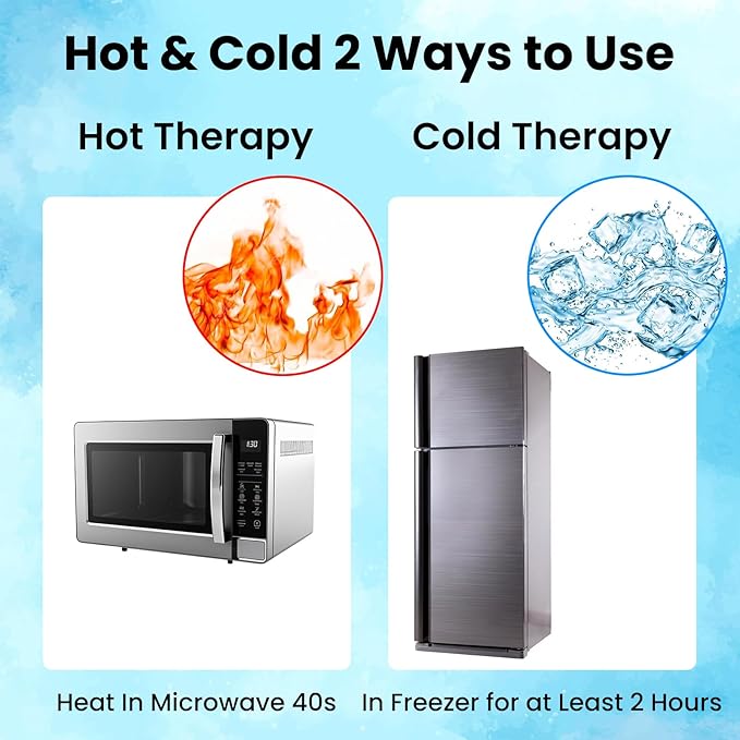 - Versatility & Dual Usability: This hot and cold pack for neck is great to have on hand for a variety of body parts. Put it in the freezer for cold therapy or heat it up in the microwave for hot therapy. Gel ice pack flexibility allows you to position it exactly how you need it. Better relieve head, neck, back, leg, knee, thigh, elbow, foot and ankle pain, joints and so on.
