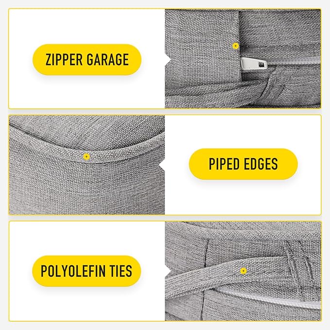 - 【Invisible Zipper Garage | Removable Cover with Ties】Zippers lock to keep a tight closure, stored in protective garages to prevent scratching your patio furniture when closed and offer a seamless look. Removable cover with non slip ties, customizable fit to keep your cushion where you want it.