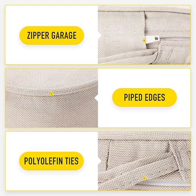 - 【Invisible Zipper Garage | Removable Cover with Ties】Zippers lock to keep a tight closure, stored in protective garages to prevent scratching your patio furniture when closed and offer a seamless look. Removable cover with non slip ties, customizable fit to keep your cushion where you want it.