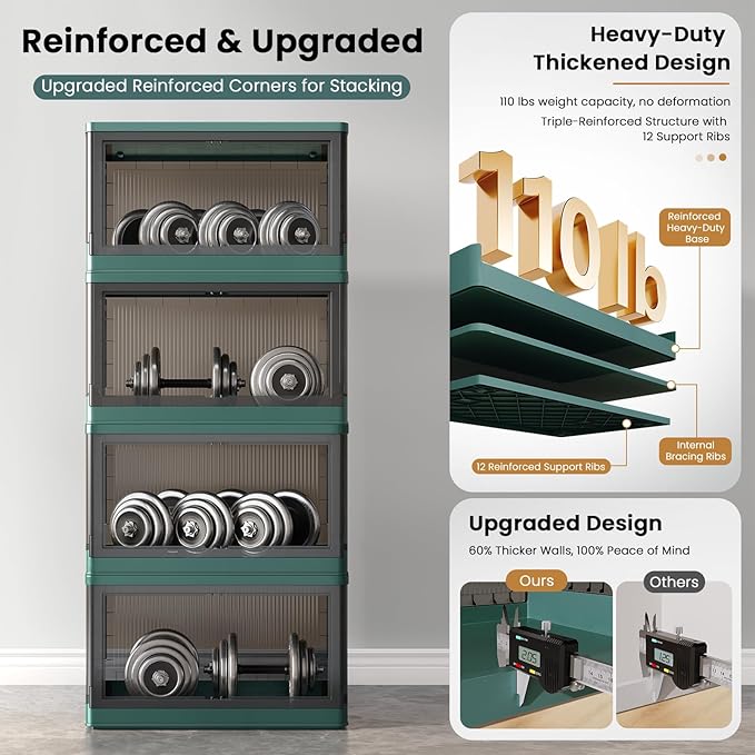 - Quick Assemble & Fold: Our storage containers can be assembled in 1 minute and folds down to 4 inches when not in use, easily tucking under beds/tight spaces—saves 80% of space. Heavy-duty PP plastic (2mm thick walls) supports 110 lbs (50 kg)/pack