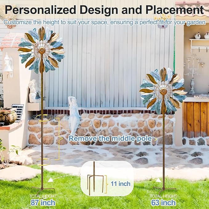 - 【87'' Extra Large Garden Spinners】- Different from small-sized windmills, this 22" wide and 87" height large-sized are more ornamental. And the 22mm diameter tube is thicker and more stable to resist strong wind. You can adjust the height as you need. A wonderful decoration to any garden