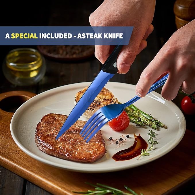 Portable Travel Utensils Set,Reusable Utensils,Travel Camping Cutlery Set,Stainless Steel Flatware Set with Case,Lunch Boxes Workplace Camping School Picnic (Blue)