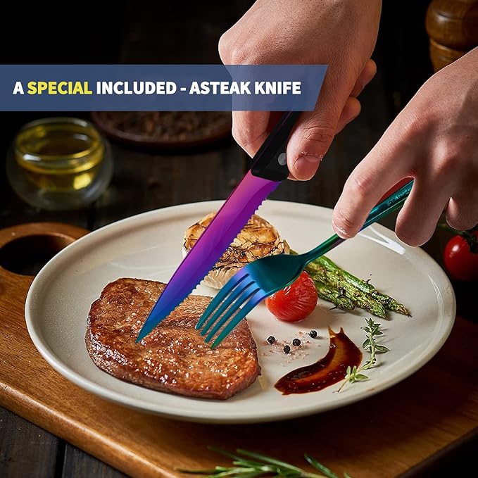 Travel Utensils with Case,Reusable Utensils,Portable Travel Camping Cutlery Set,Stainless Steel Flatware Set,Lunch Boxes Workplace Camping School Picnic (Rainbow)