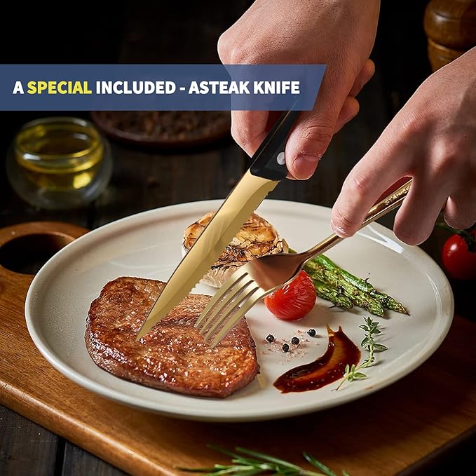 Travel Utensils with Case,Reusable Utensils,Portable Travel Camping Cutlery Set,Stainless Steel Flatware Set,Lunch Boxes Workplace Camping School Picnic (Gold)