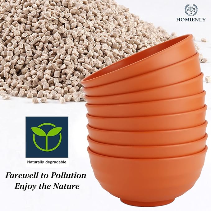 Homienly 60 OZ Large Salad Bowls,Wheat Straw Bowls Set of 8,Large Serving Bowl for Wedding Parties, Microwave and Dishwasher Safe Bowl for Salad,Soup,Big Bowls for Kitchen-Orange