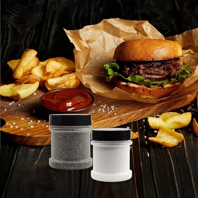 Cornucopia Brands Mini Plastic Spice Jars w/Sifters (12-Pack, Black); 2 Tablespoon Capacity (1 Fluid Ounce) Spice Bottles for Travel, Glitter, Gifts, Favors