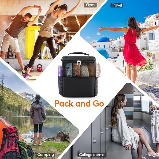 - Quick Dry: The resin mesh cloth is breathable and the bottom mesh design allows water to go through easily when showering without water hazards. It also provides ventilation for the shower caddy bag and keeps the contents dry inside.