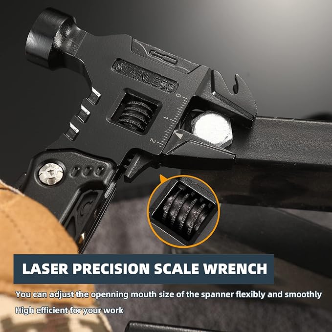 - Adjustable Spanner : The most surprising point is that our multitool is with a adjustable laser precision scale spanner.The size of the mouth of the spanner can be adjusted flexibly and smoothly.High efficient for your work.