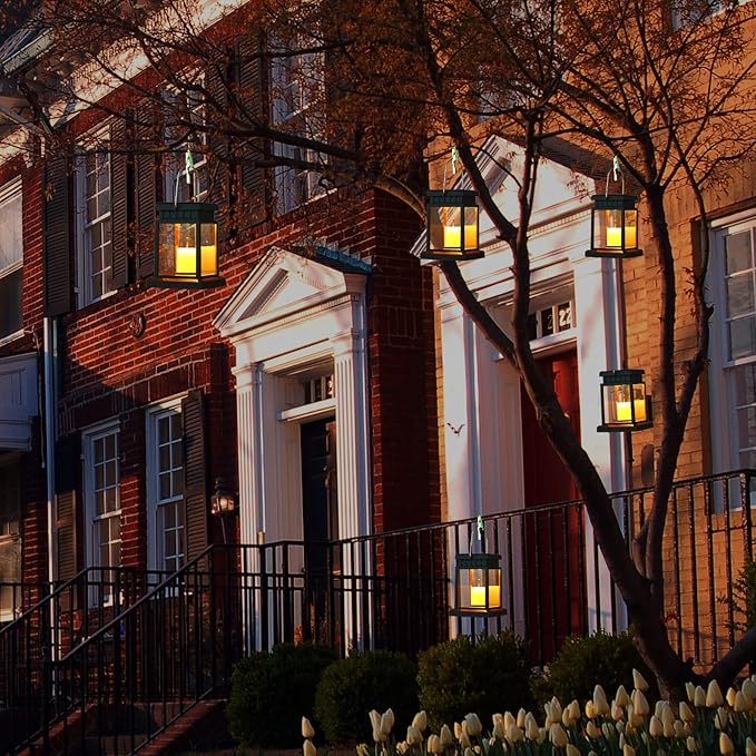 - Weatherproof IP65: solar outdoor hanging lantern is powered by solar energy and has IP65 waterproof grade, which can work normally even in rain and snow; The waterproof hanging solar candle lights design can withstand various weathers, such as sunny, rainy and snowy days