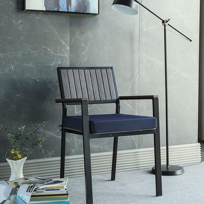 Patio Chair Cushions Set of 2 Non Slip Bottom Chair Pad with Ties Waterproof Square Outdoor Seat Cushion Replacement for Garden Swing Furniture 20x20 Inch, Navy Blue