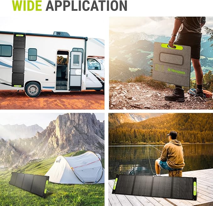 - Portability & Versatility: Newpowa 200W Portable Solar Panel with an expanded size can be folded into an ultra-compact size. Coming standard with a durable carry- handle, this panel can be easily folded and carried anywhere you go. This panel is great for RVs, camping, hiking, and much more.
