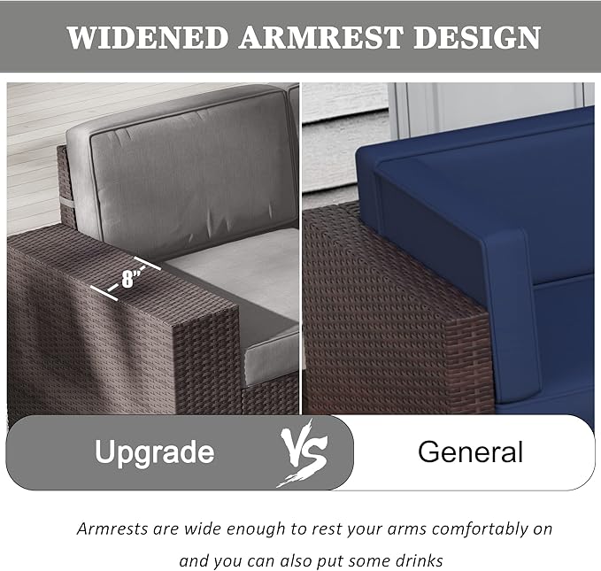 - FLEXIBLE COMBINATION SETTING: 7 pieces outdoor furniture sets come with 2 x Corner Sofas, 3 x Single Sofas, 1 x Fire Pit Table, and 1 x Coffee Table. It allows being pieced together in any combination to suit your needs and match your space